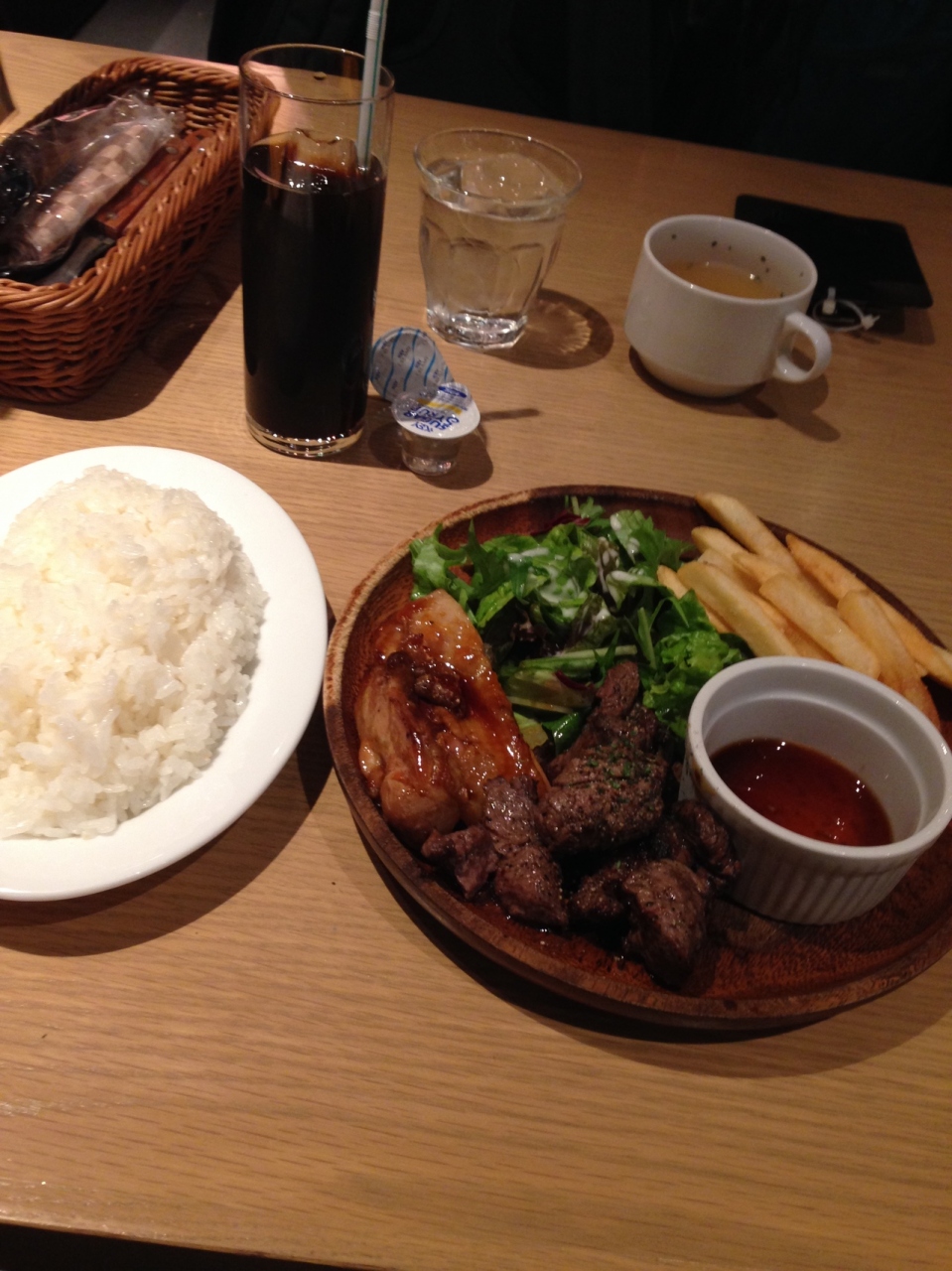 ヨドバシAkibaレストランフロアにあります。平日ランチ時に一人で入りました。ステーキのセットに惹かれましたが、ランチとしては値段がちょっと高かったので、ステーキとチキンのプレートを注文しました。味、ボリュームはまずまずでした。