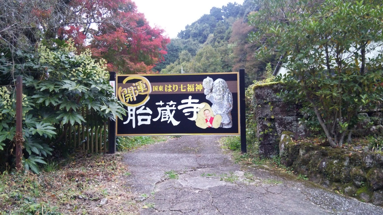 熊野磨崖仏の入口隣にある寺です。入ると金ぴかの仏像が出迎えてくれました。宝くじがあたるご利益があるとされる、宝くじ地蔵がお目当てで参る人も多いようです。お参りにきて、三億円が当たった人がいるそうです。