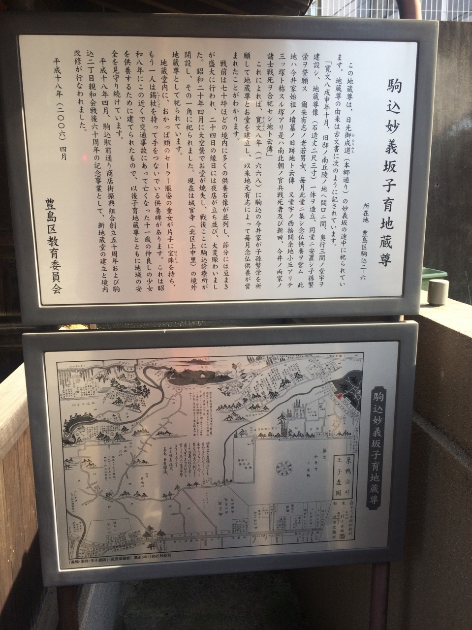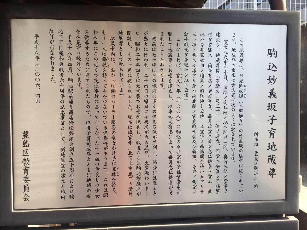 駒込駅から旧古河庭園方面へ徒歩5分ぐらいの場所にあります。小さな立派な建物の中にお地蔵さんが祀られ周りは道路・ビル群なのでひときわ目をひき隣には椅子もあり休憩出来るエリアになっています。詳しく書かれた説明看板があるので熟読しました。
