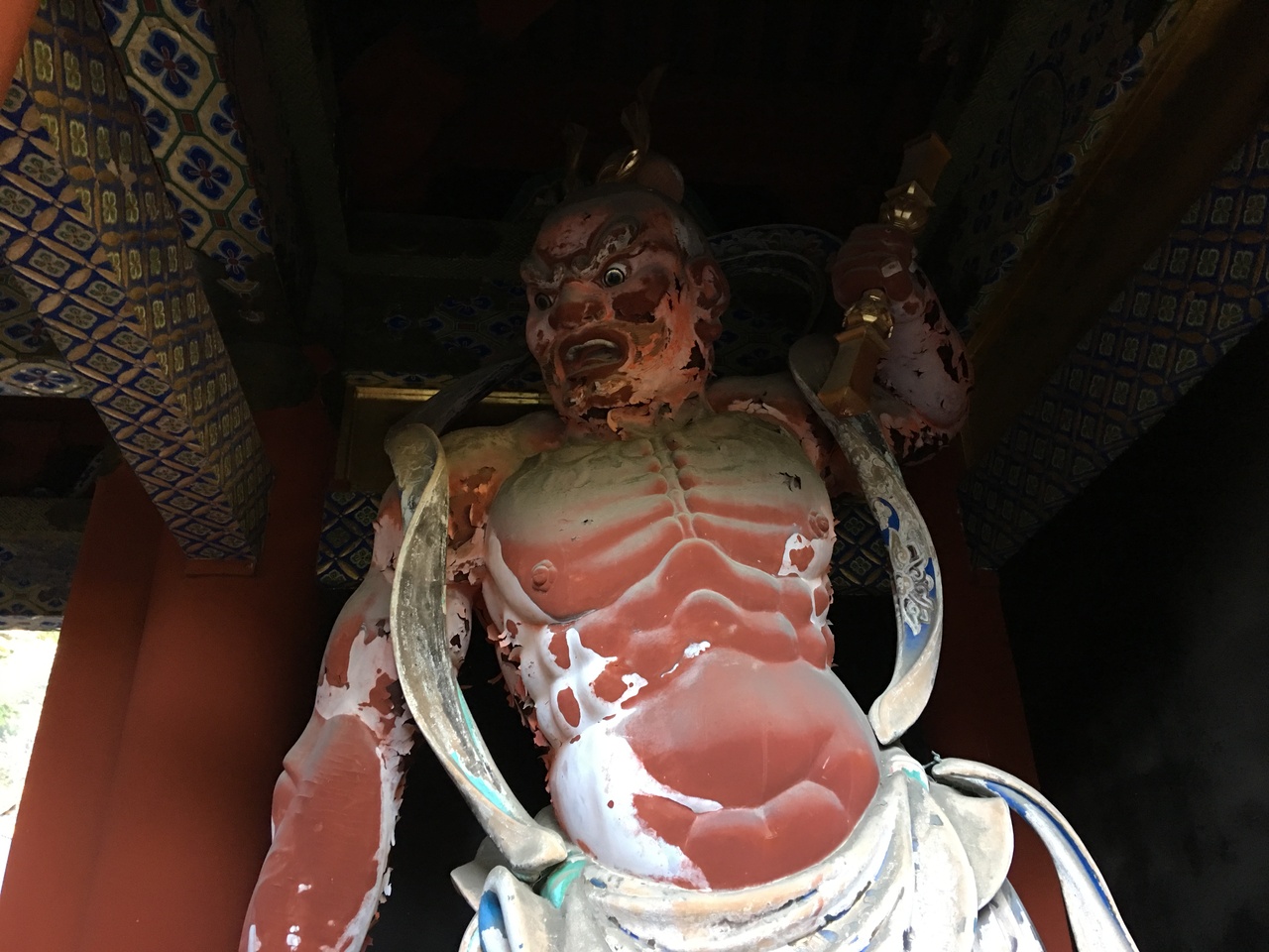 表門の両脇に建つ仁王像の、その生き生きとした表情には見入るものがありました。門全体として重厚感がある中で、2体の仁王像がさらに威圧感を与えており、人通りの多い通路ではありましたがじっくりと拝見しました。写真撮影時は通行人に気を付けましょう。
