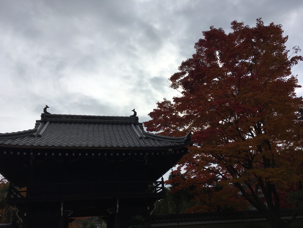あいにくの曇り空でしたが、門をくぐるとまず真っ赤に紅葉した木があり見応えがありました。
