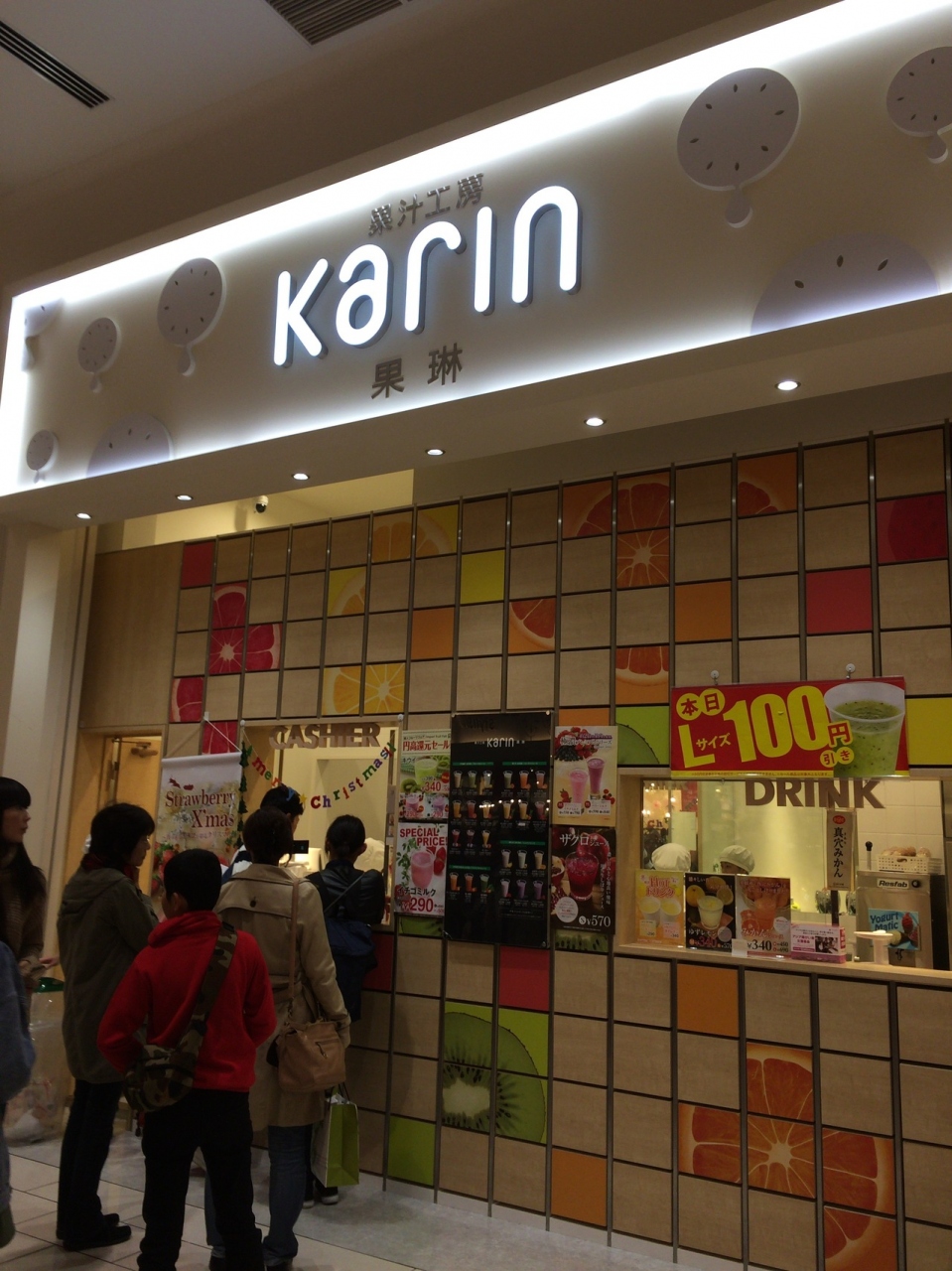 滋賀県草津市のイオンモール草津内にあるフレッシュジュース屋さん。1階にあります。何ヶ月か前に開店してから、結構流行っているお店です。