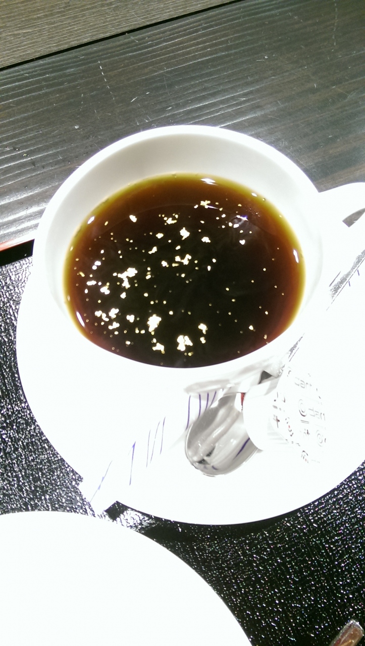 気合い入りすぎて疲れ、金箔コーヒーで振る舞い。カフェもなかなか落ち着いていいですよ。