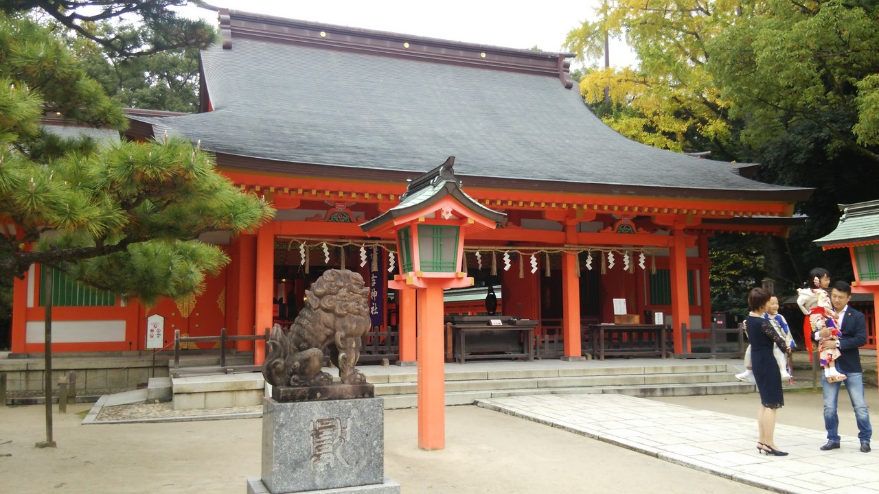 時節柄、七五三の家族連れが目立ちましたが、博多を代表する神社です。境内には博多の古図があり、筑前国一之宮として長い歴史があることが分かりました。社殿は立派で、功徳池と天竜池や稲荷神社、恵比寿神社もありました。御朱印もいただきました。