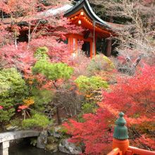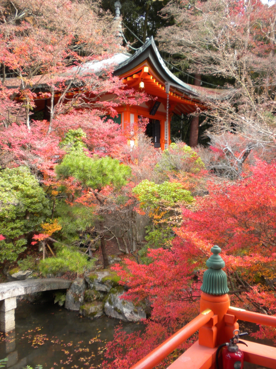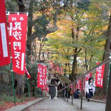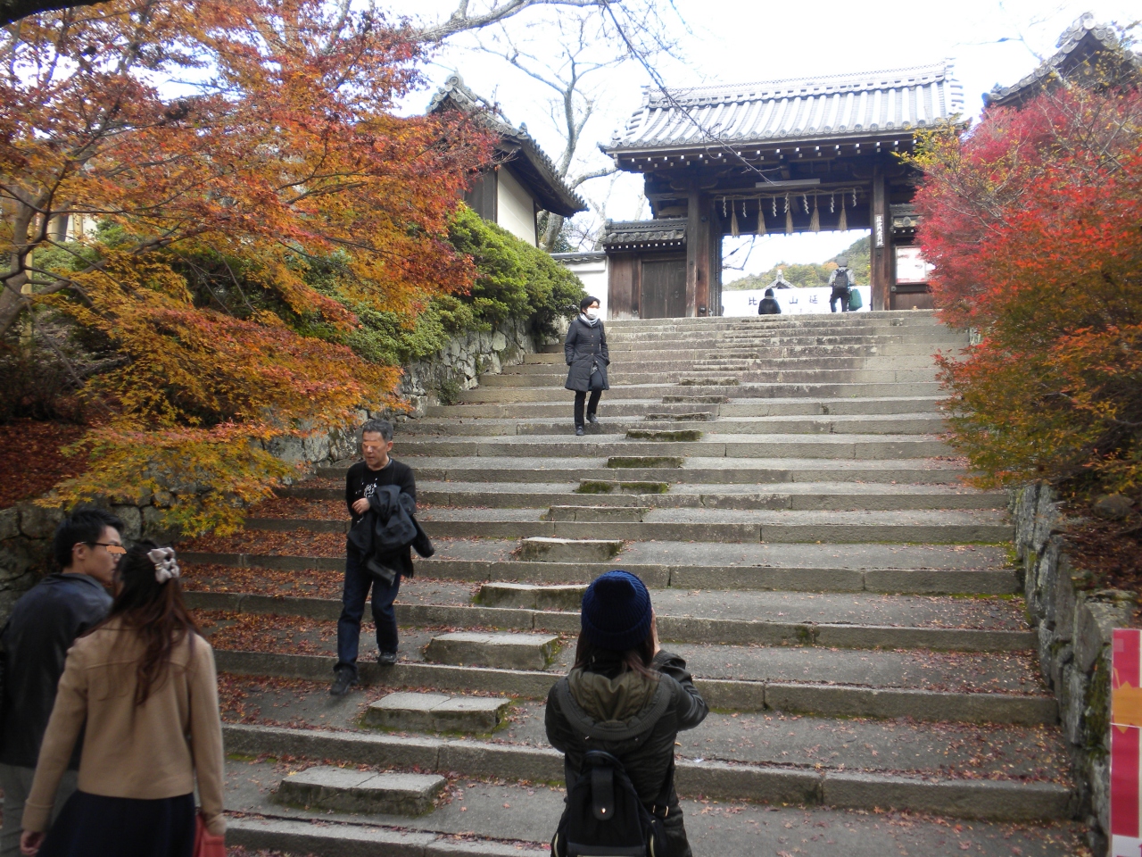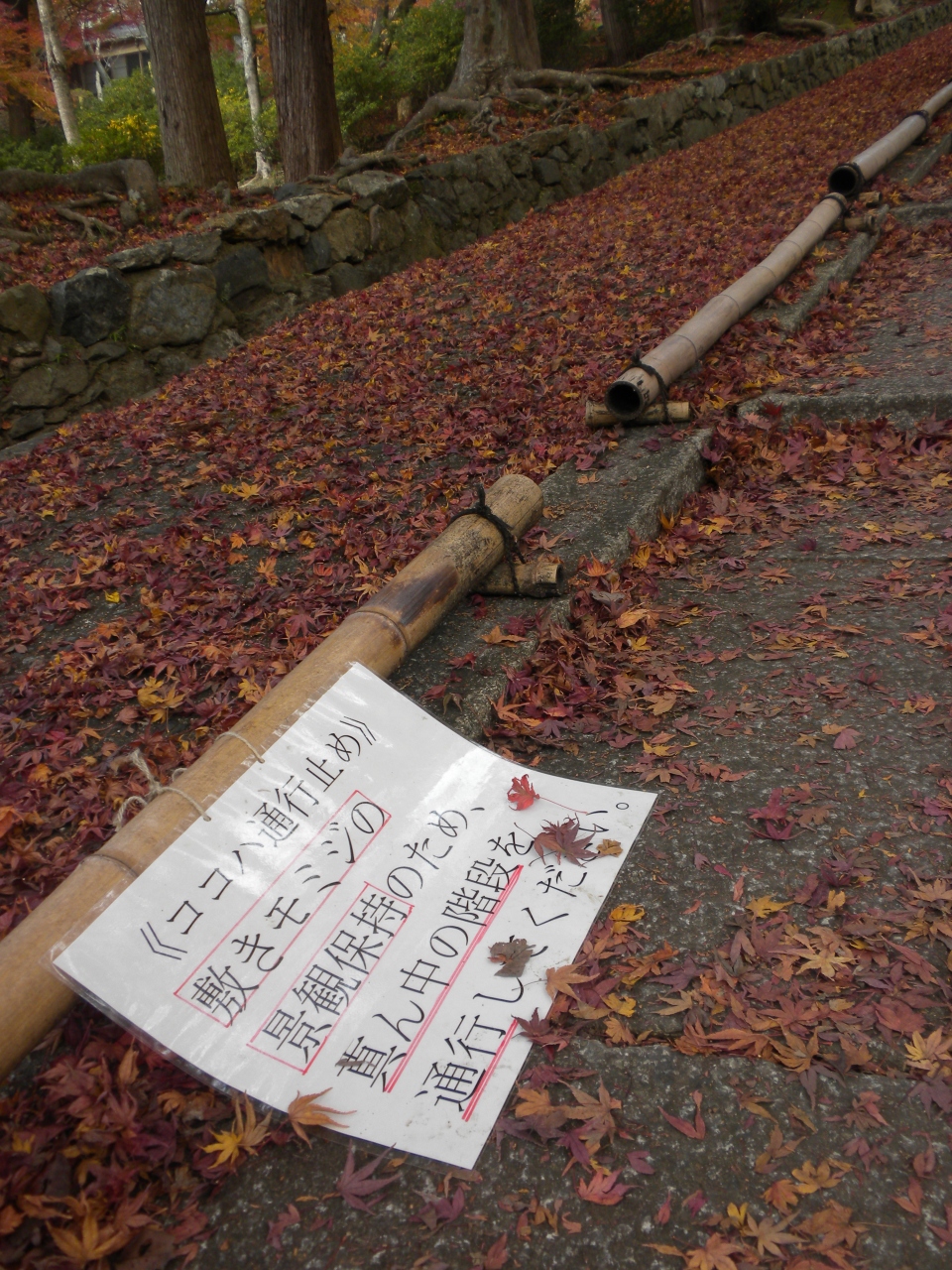 参道階段に散った紅葉の絨毯の写真が有名ですが、実際は観光客に踏み荒らされてしまうので階段の両脇に保存エリアが確保されているという感じです。