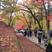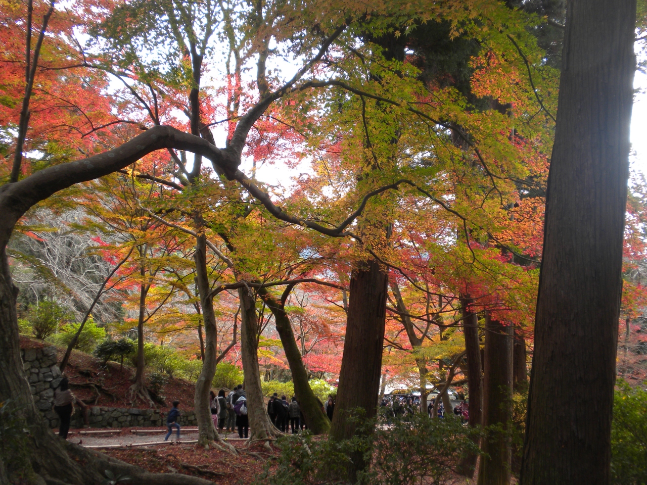 - 観光地化された場所で人に踏み荒らされない参道の散紅葉の風情を求めるのは所詮無理な話です。
