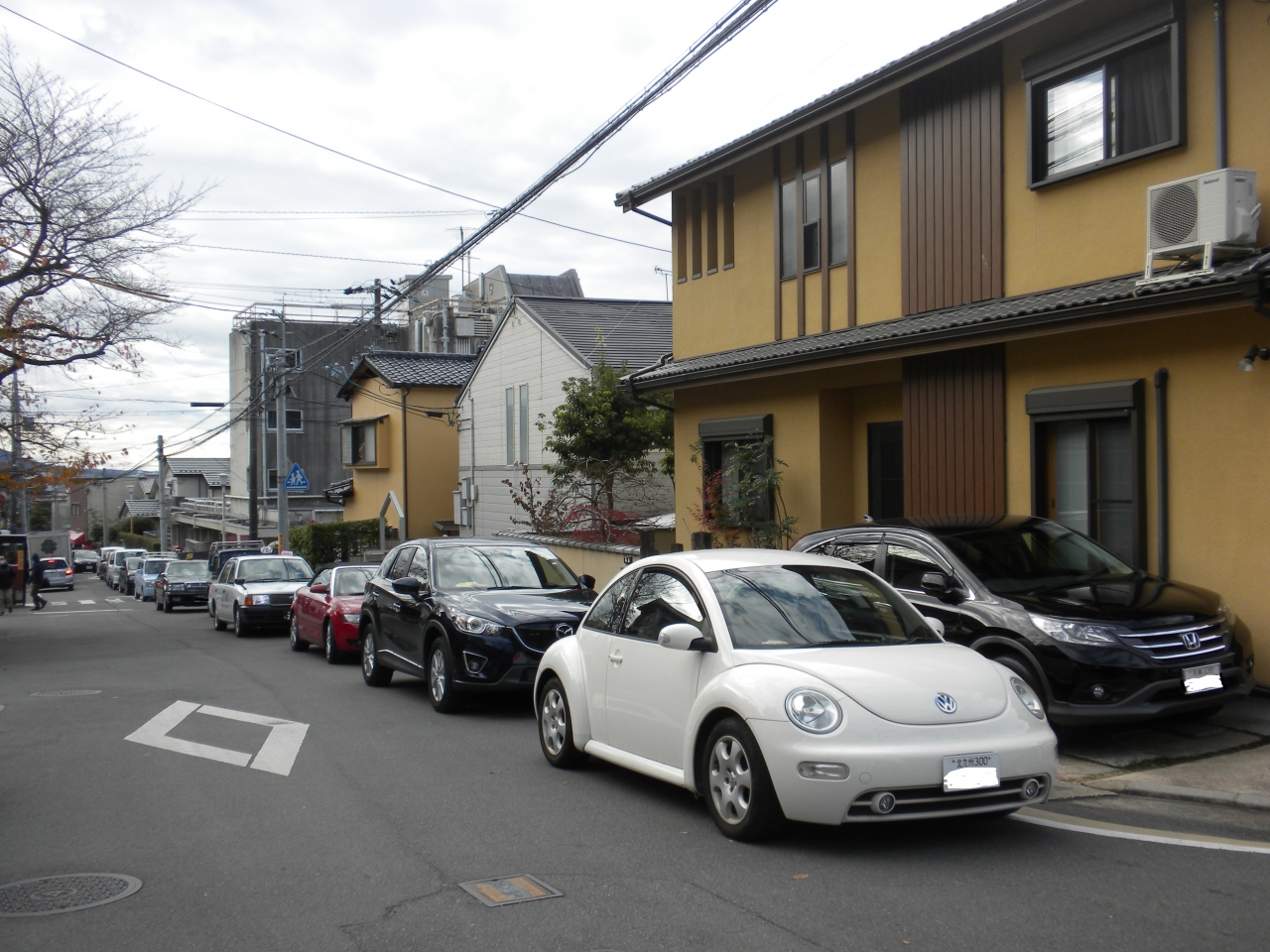 - 山科の駅から緩い坂道を1㎞程歩きます。車は大渋滞です。
