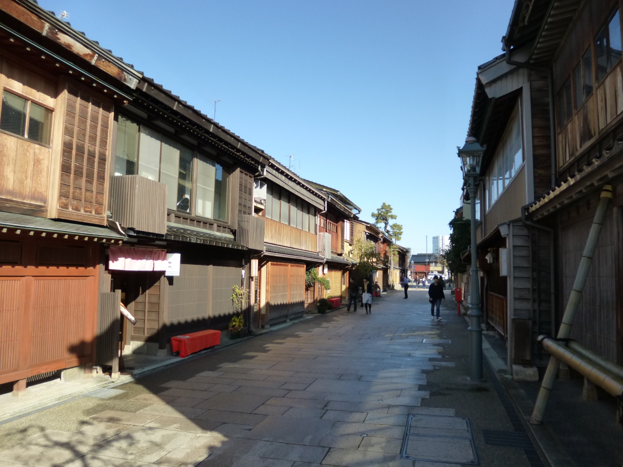 金沢の茶屋街は、東と西があります。東の方が観光客が多くいくようですが、静かな雰囲気を味わいたいなら、にし茶屋街の方が良いと思います。今回は、午前中に行ったので、夜の茶屋街の雰囲気は味わえませんでしたが、街並みを静かな環境で堪能することができました。