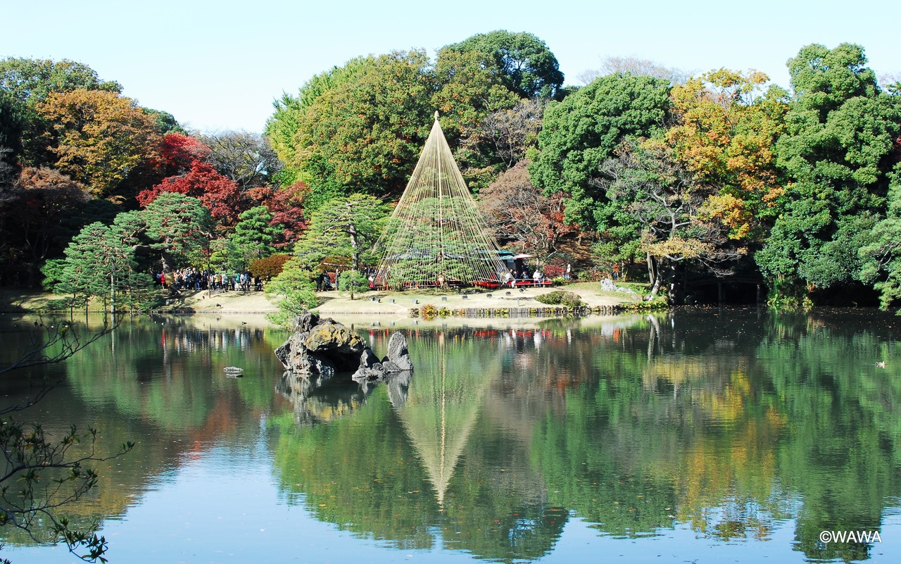 外を回って南にある正門に行くとすぐに入れました。松の養生を兼ねた雪吊りなど、池の周りの庭園は美しかったですが、紅葉の染まり具合は今ひとつだったことが残念でした。
