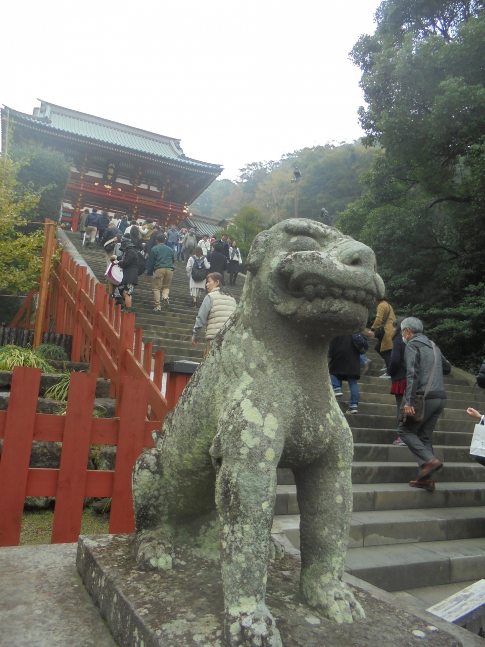 鎌倉駅から小町通を通り、のんびりと20分くらい歩いたのですが、あっという間に到着しました。11月で15度くらいあり暖かく観光客も大勢でした。長い石段を登り切ったときほっとした気持ちになりました。源平の池、政子石などもあります。とっても広くてビックリしました。
