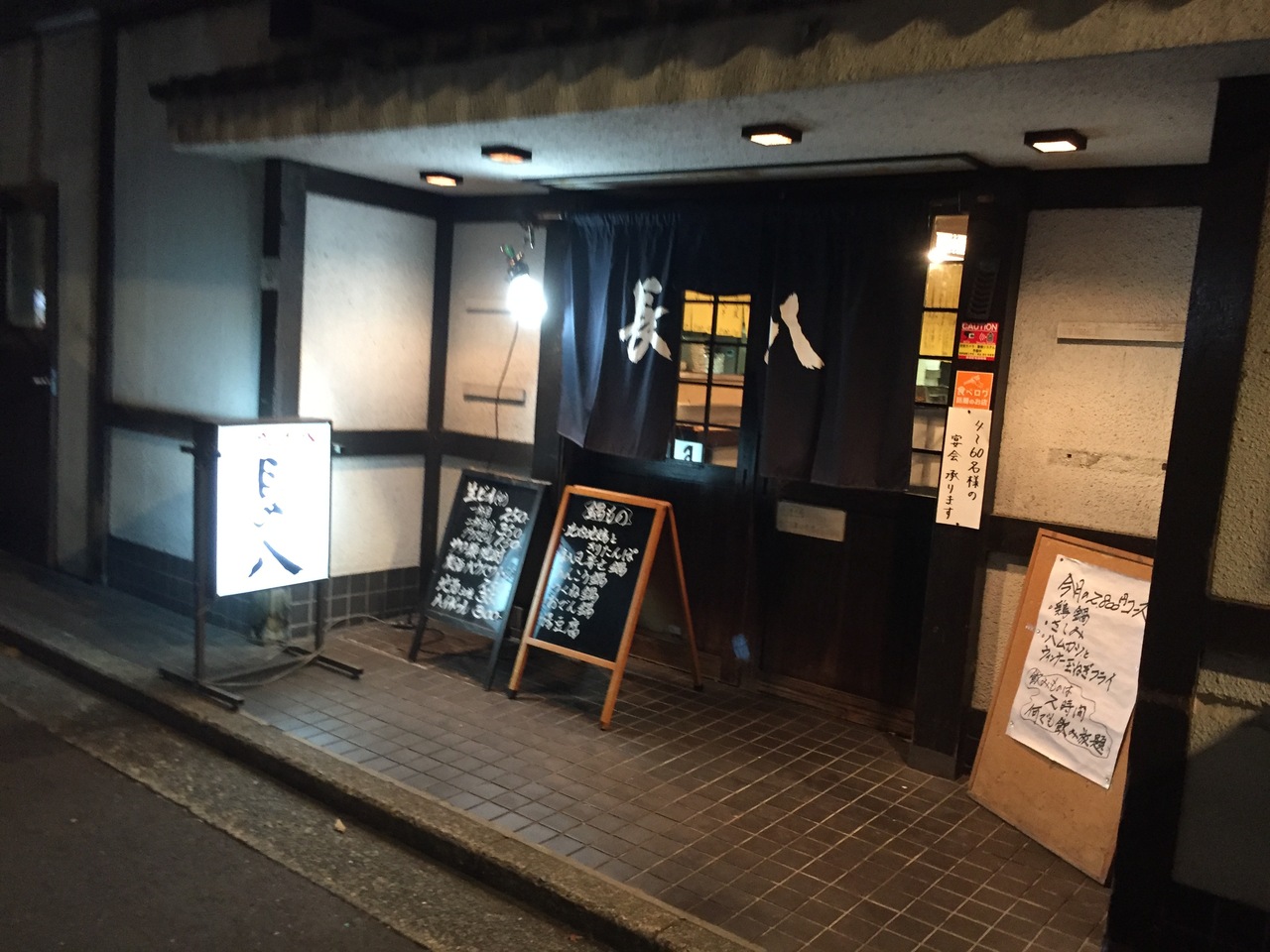 JR関内駅から徒歩3分です。伊勢佐木町のモールから一本奥に入った場所で少し分かりにくいです。お店はむかしながらの居酒屋という風情で、飲み放題メニューもあります。
