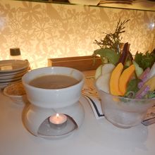 料理は野菜のバーニャカウダ。ソースが美味しかった。メニューにはないパンを出してもらって浸けて食べた。