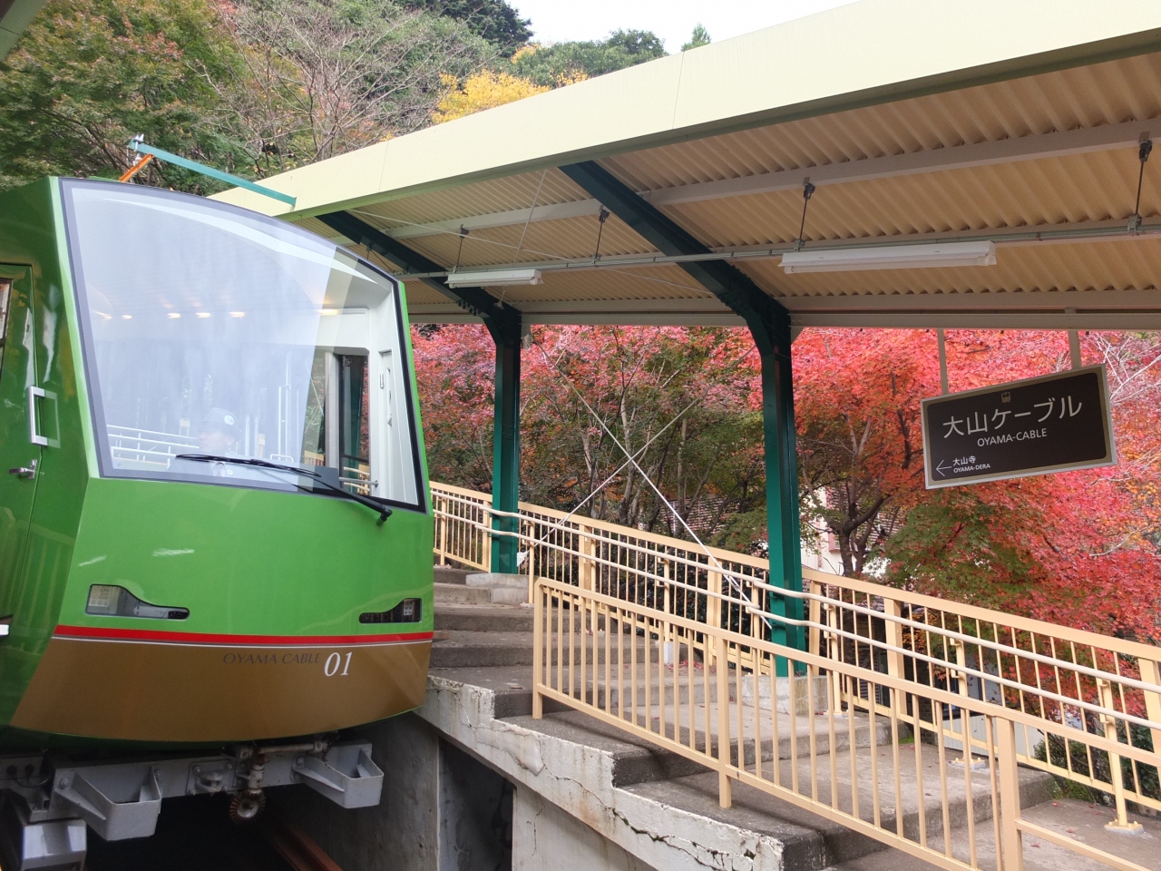 最寄りのバス停からケーブルカーの駅までは、こま参道という商店街を通って15分ほど。この道は緩やかな坂になっているので、結構息が切れました。ケーブルカーを使うと、大山の中腹にある阿夫利神社まで上って行けるので、気軽に大山の登山を楽しめます。