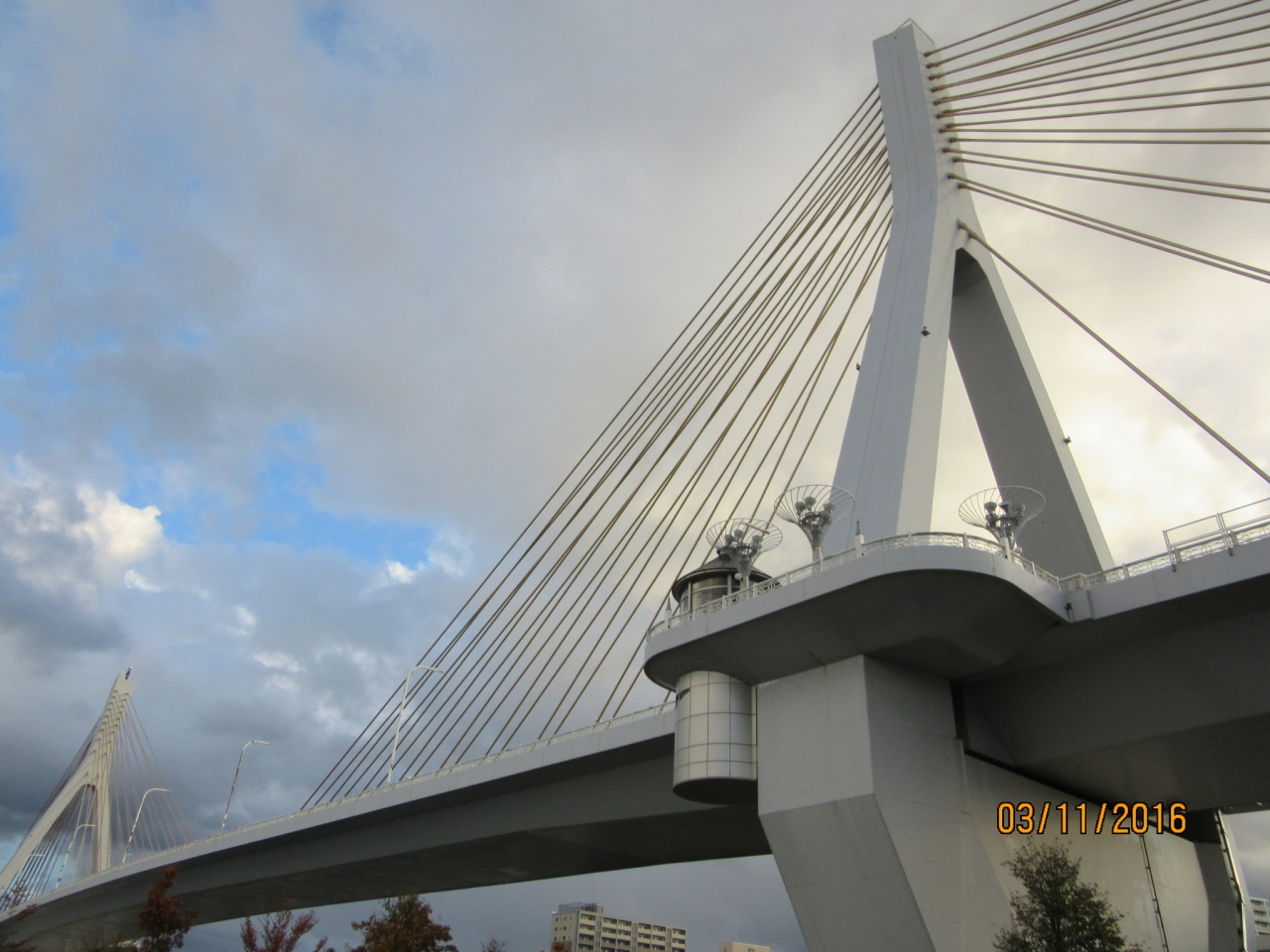 エーファクトリーの先からアスパムまでブリッジの歩道を約500メートル歩いた。