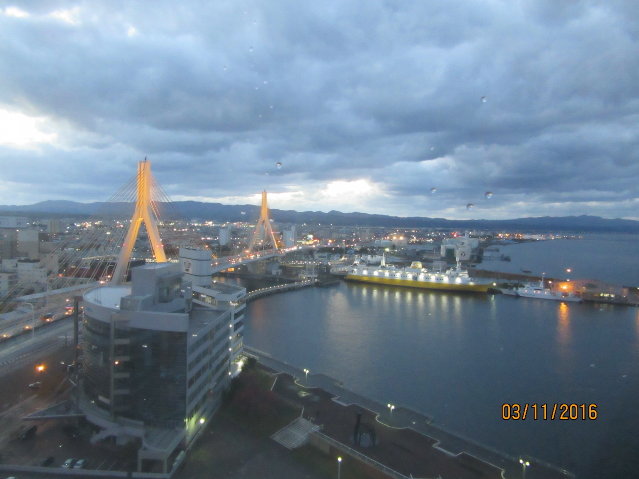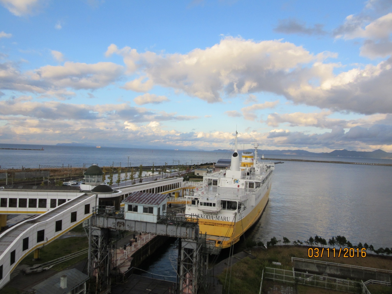 平成6年に貨物輸送の渋滞緩和の為に建造された1994メートルの橋で夜はライトアップされてアスパム展望台から見ると八甲田丸の黄色とマッチして非常に美しかった。