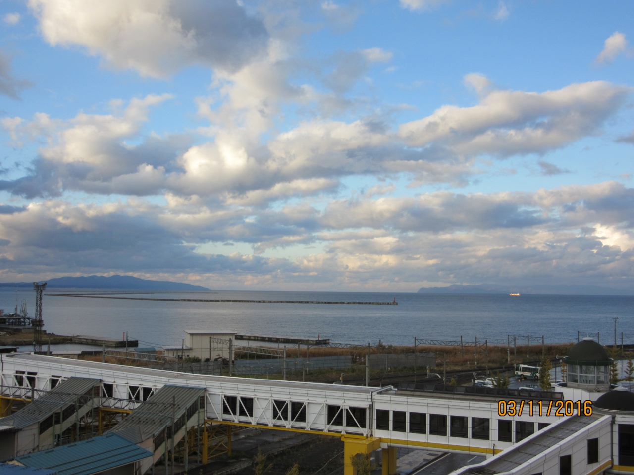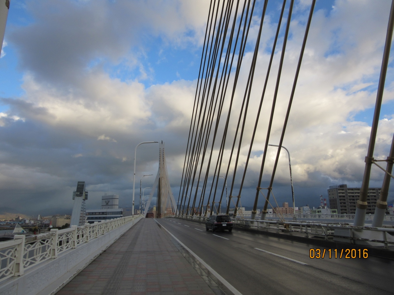 歩道は広いので危険はなかった。橋の上から見える八甲田丸、津軽半島、下北半島の遠景がとても美しかった。