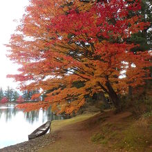 11月上旬でちょうど紅葉が綺麗な頃で、庭園の大きな池、毛越寺の建物、小高い山を背景に、紅葉がそれらと組み合わさって美しい景色を醸し出していました。