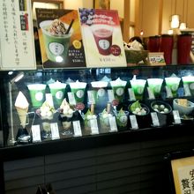 伊藤園というとペットボトルのお茶(おーいお茶など)のイメージが強いですが、このお店では、抹茶のソフトクリームなどを食べることができるということもあり、店内はたくさんのお客さんで賑わっていました。