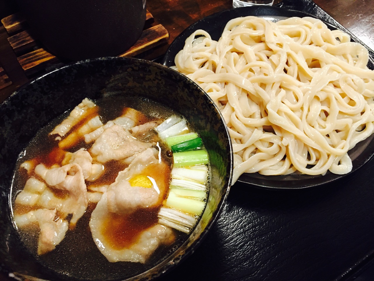 関西人には馴染みのないと武蔵野うどんのお店です。麺は太めでつけ汁につけて食べるおうどんです。麺だけで500グラムもありボリューム満点です。麺はしめてあるのでコシがあり、つけ汁にいれるとかなり柔らかくなります。950円でした。