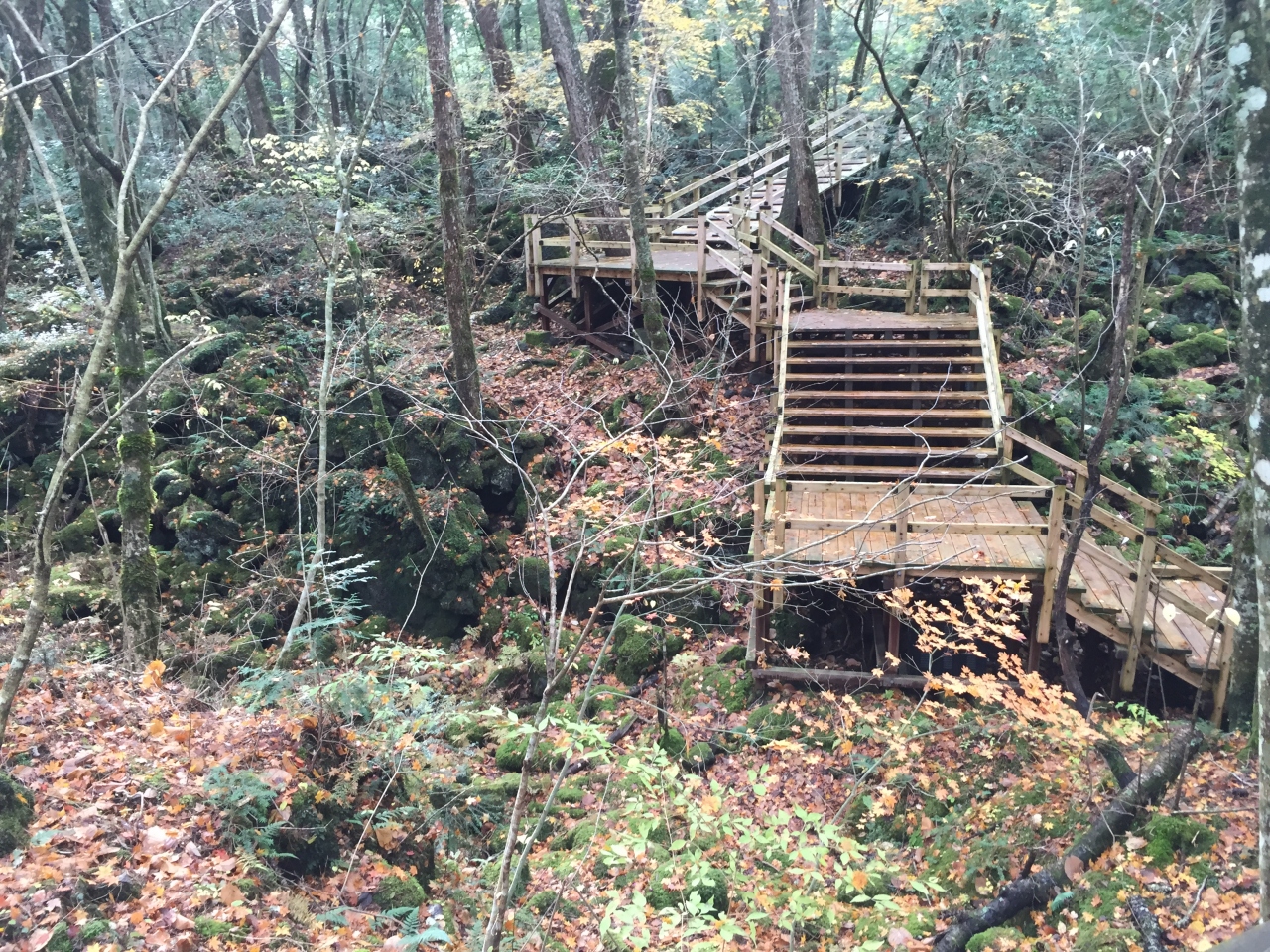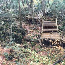 樹海の中を約10分弱歩きます。緑のにおいを感じたり洞窟への期待感で散歩気分で味わえます。