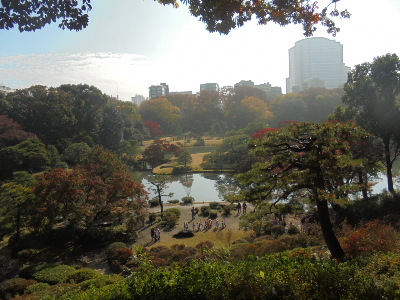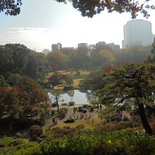 六義園の中には見どころがたくさんありますが、ここが一番高い位置にあります。雨降りの翌日だったので地面がぬかるんで滑りました。足元は気を付けたほうが良いです。上るのに結構疲れましたが、ここからの景色は最高でした。