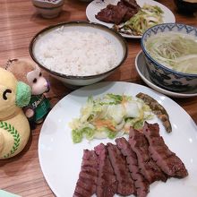 寒い季節に向かうと食べたくなるのが、利久の牛たんです。スープに漬物。ライスにとろろを追加して、厚切りの牛たんをいただきました。ランチにしては、ちょっと贅沢なお値段。