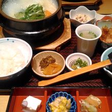 すぐに前菜3種がでてきて、10分後くらいにぐつぐつ煮た水炊きが運ばれてきました。