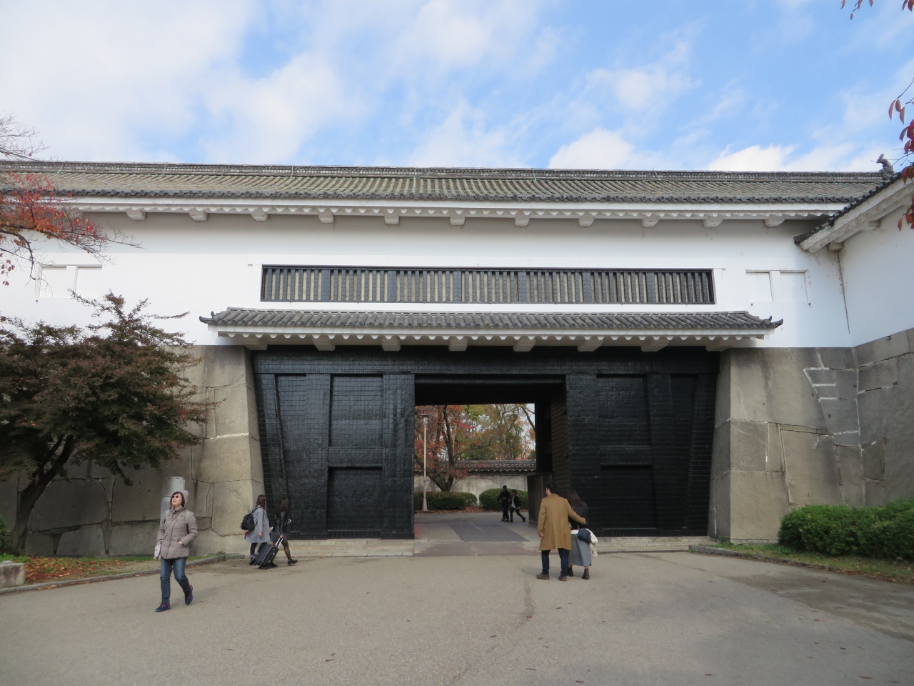 大手門を入り直角に左に折れたところに、この多聞櫓があります。櫓と言っても、圧さ10mほどの分厚い門のような建造物でした。「門」の上には両側とも窓のようなものがついていて、ここで敵を待ち構えている様子を想像することができます。