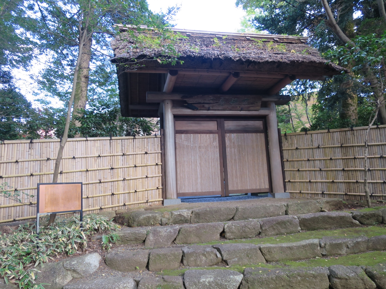 松永記念館から竹林を抜けた先に明治期の元首・軍人であった山縣有朋の別邸 古稀庵の跡があります。見学できると思い行ってみると、そこは損保会社の研修所となっており日曜日のみの公開で中を見学することは出来ませんでした。仕方なしの古稀庵の表門越しに少しだけ覗いて帰ってきました。