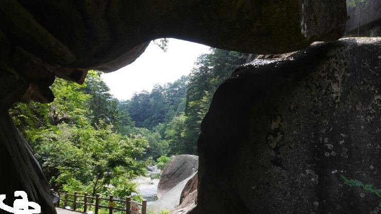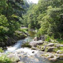 甲府駅から路線バスでアクセス。昇仙峡入口バス停から渓谷に沿って道路が通じているのでロープウェイ乗り場まで1時間程度の散策。道路幅員が狭い上、自動車がそこそこ通るので注意が必要だが、独特の地形を眺めながら渓谷の自然を満喫した。途中、覚円峰や仙娥滝などが見どころ。多くの観光客は滝の前後区間の散策を楽しんでいるようだった。