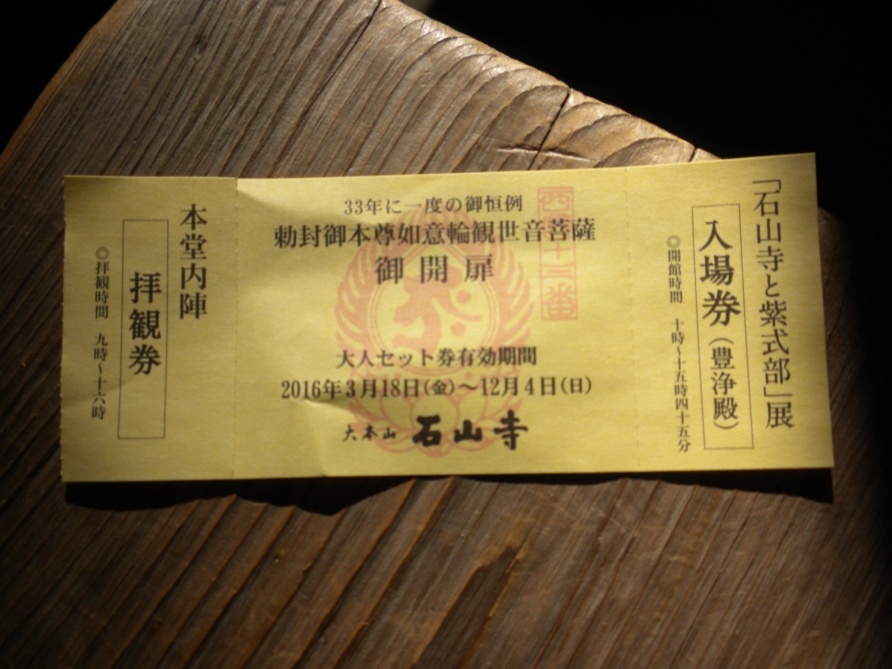 入山料\600+御本尊拝観料\500+石山寺と紫式部展\300=\1,400のところ、セットだと\1,200になります。