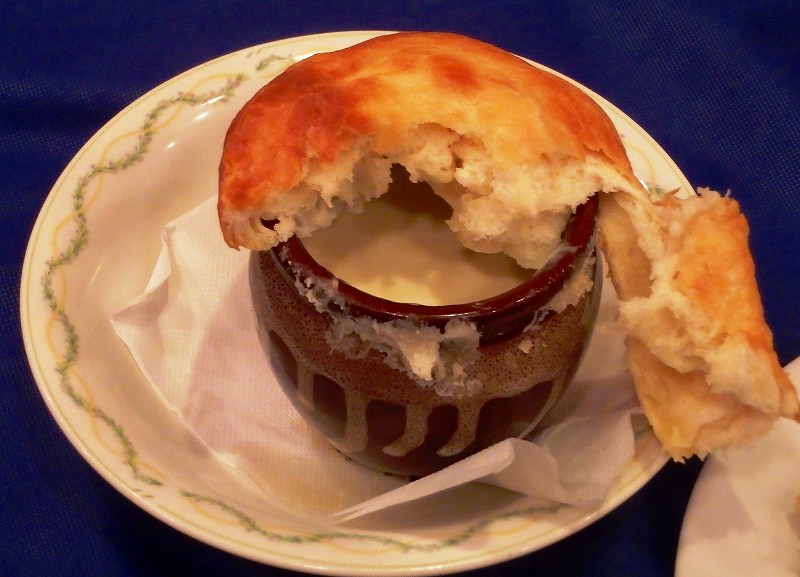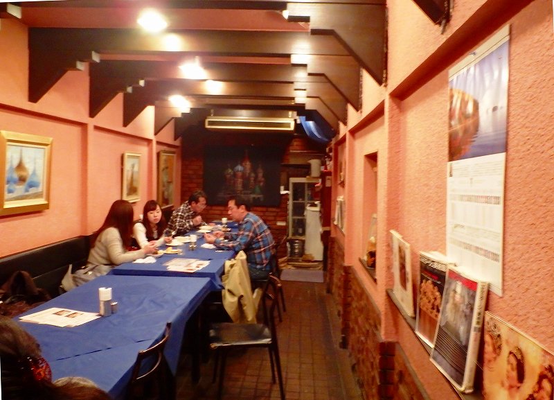 神田神保町で学生時代によく行った書店街で、みつけた。店頭にあったランチの案内からは予想していなかったが、意外にお腹がいっぱいになるほどの量だった。サラダに始まり、スープ、メーン、デザート、パンというランチ。最初のサラダは、キャベツをロシア料理独特のスパイスやドレッシングでザワークラフトのように仕立ててあり、おいしかった。スープはキャベツ、じゃがいも、肉。それぞれ具の量は多いわけはないが、ボルシチ仕立てで、これもグッド。メーンはつぼ焼きを選び、これはホワイトアスパラとマッシュルームのクリーム煮で、肉の詰まったピロシキもついてくる。壺を覆うように焼いたサクサクのパンをちぎって壺の中にひたして食べる。そもそもついてくるパンと重複するようだが、こちらのパンは芳香な酸味のあるロシアパンなど2種類あって、どちらもサクサクとは別の意味で美味しかった。またこのパン2種類のうち片方にはクリームチーズが載っていた。最後のデザートは、アイスクリーム風のキセーリ。ヨーグルトぽい舌触りで、ランチの仕上げにぴったりだった。以上、つぼ焼きコースのランチ1200円。店内禁煙もいい。カードは使えず、現金のみだったのが唯一残念だった。