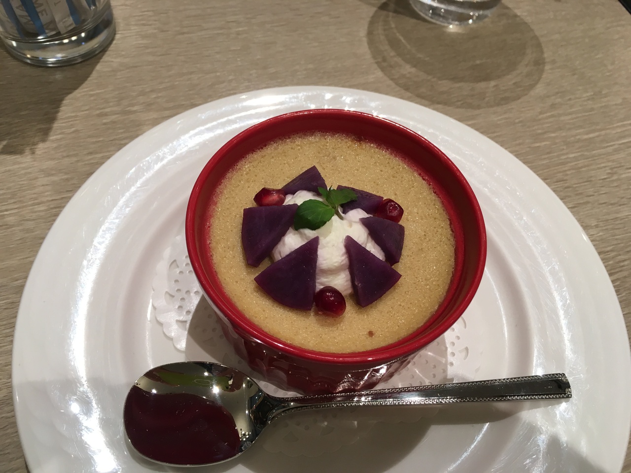 日比谷公園を通りかかったので、ティータイムに利用。手作りのケーキと紅茶orコーヒーでなんと918円。ケーキは甘さ控えめで、季節感もあり、大きさも十分。寒い中テラス席を利用している人も多かったですが、中からでも紅葉が見え、気持ちよくお茶ができた。ケーキは8種類ほどあり、サンプルを持ってきてくれる。さつまいものプリン、コーヒーゼリー、いちごのショートケーキ、いちごのシュークリーム、フルーツタルト、チョコレートムース、チョコレートのロールケーキなどがあった。