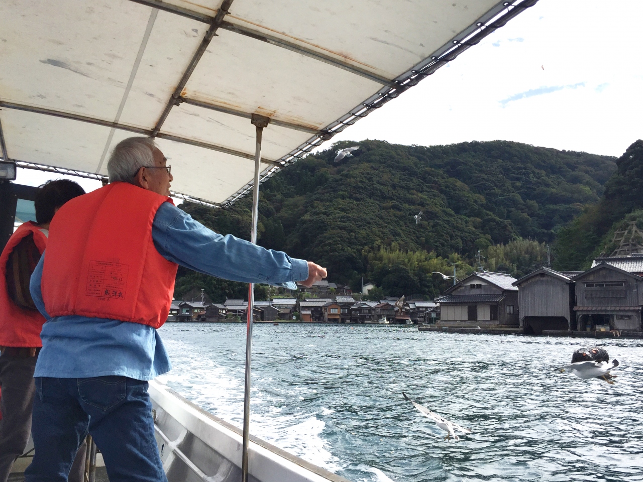 伊根湾観光は遊覧船もいいですが、オススメは海上タクシー。2名以上なら1000円/人。電話すると指定した場所まで来てくれて観光ガイドとカモメの餌付、遊覧船が行かないような舟屋の近くまで近づいてくれるので見応えがあります。