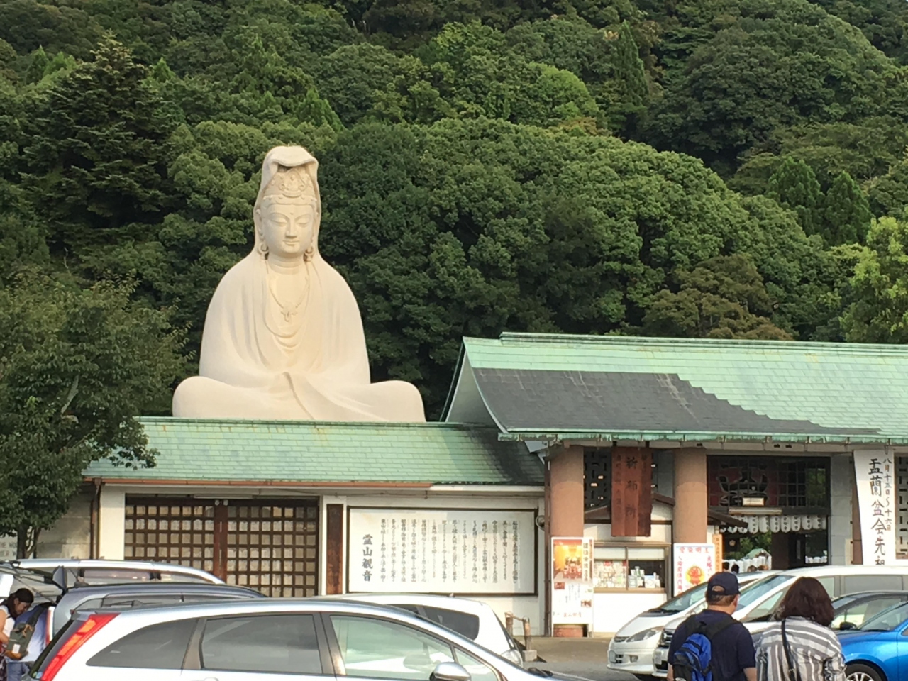 見上げずに観音様の全景を撮れるところを探したら、敷地外の駐車場でした。