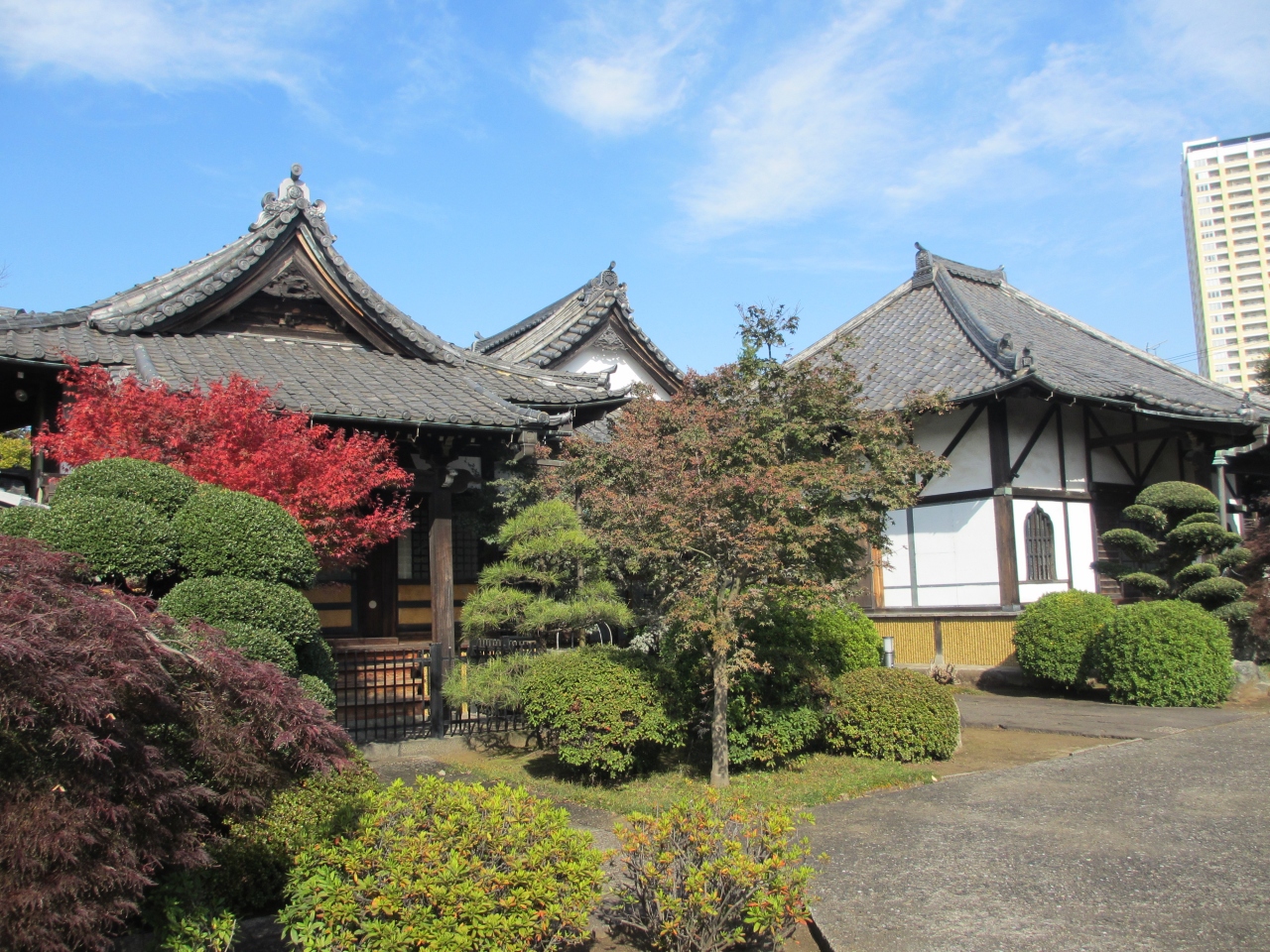 日暮里駅から谷中銀座へ向かう途中の路地を右に入った所にある寺です。谷中銀座の賑やかさに比べ、とても静かで落ち着きある寺です。静寂ささえ感じられます。山門を入った右手には、石で造られたポストが置かれています。ポストの中には白い小石が入れられていましたが、どんないわれがあるのかはわかりませんでした。本堂と隣にある七面堂は趣があります。本堂前には、芝の中に7つの石がちりばめられたこじんまりした庭が造られています。芝が小石ならば枯山水といったところです。芝の周りに腰を下ろすと、静けさの中で身も心も休まります。