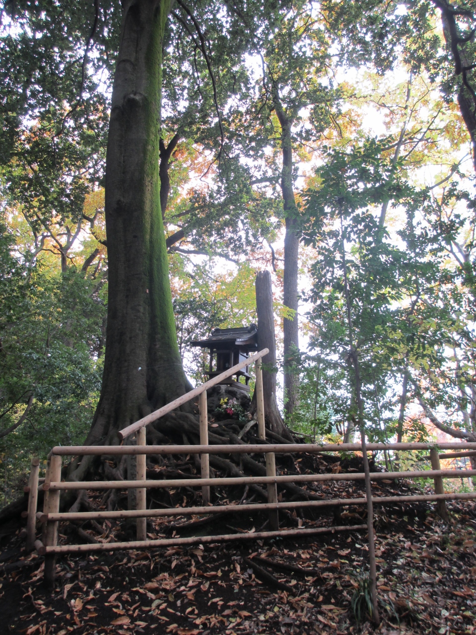 石神井公園にある三宝寺池の北側にある二つの塚のうちの一つです。太田道灌との戦いに敗れた石神井城主の後を追い、二女も三宝寺池に入水したため、二女に縁があった人が供養のために築いたといわれる塚です。もう一方の殿塚よりも立派で、塚の上には高さ24m、周囲2.5mほどのシラカシの木が植えられ、木に寄り添うようにして小さな祠が祀られています。戦国時代のこととはいえ悲しい伝説が残る塚です。