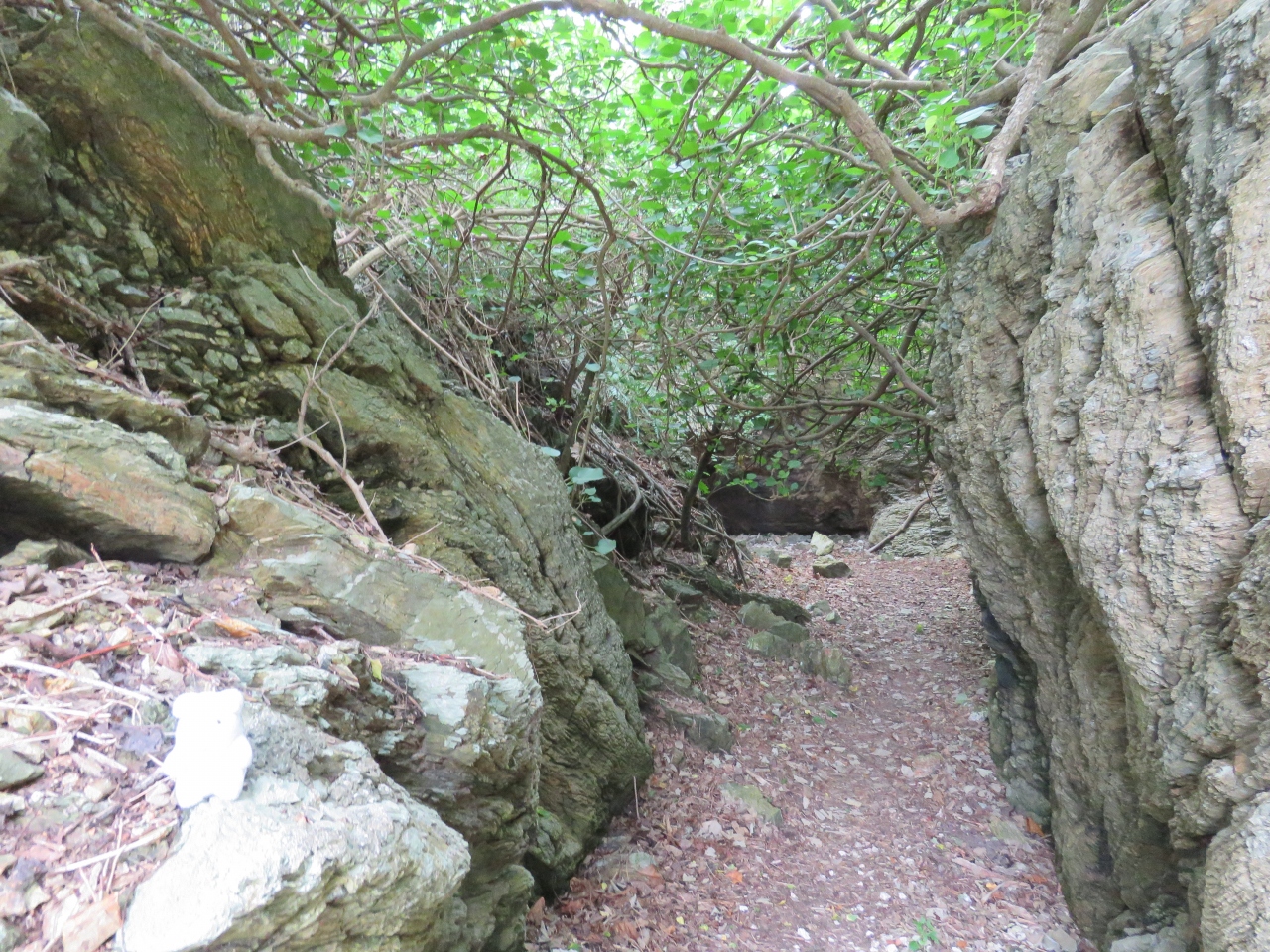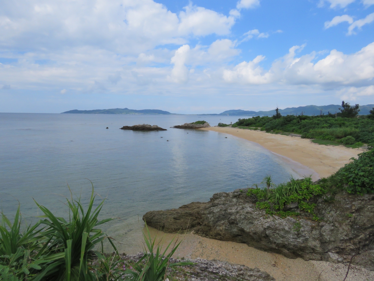 上の方まで登る小道の途中、石垣島西部の名蔵湾もキレイに眺められます。