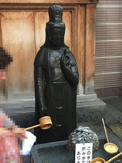 巣鴨地蔵通商店街を入って、少し行ったところにありました。とげぬき地蔵や洗い観音で有名なお寺です。訪れた時は混雑していなかったのですが、洗い観音さんには10人ほどの列ができていました。みんなが洗って拭く(タオルも置いてありました)のでとても綺麗に光っていました。朱印帳は写真の門の右手で売っています。