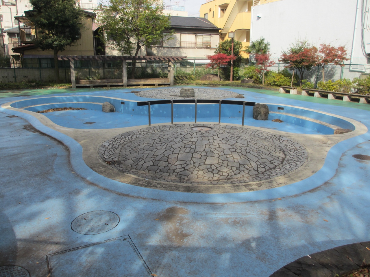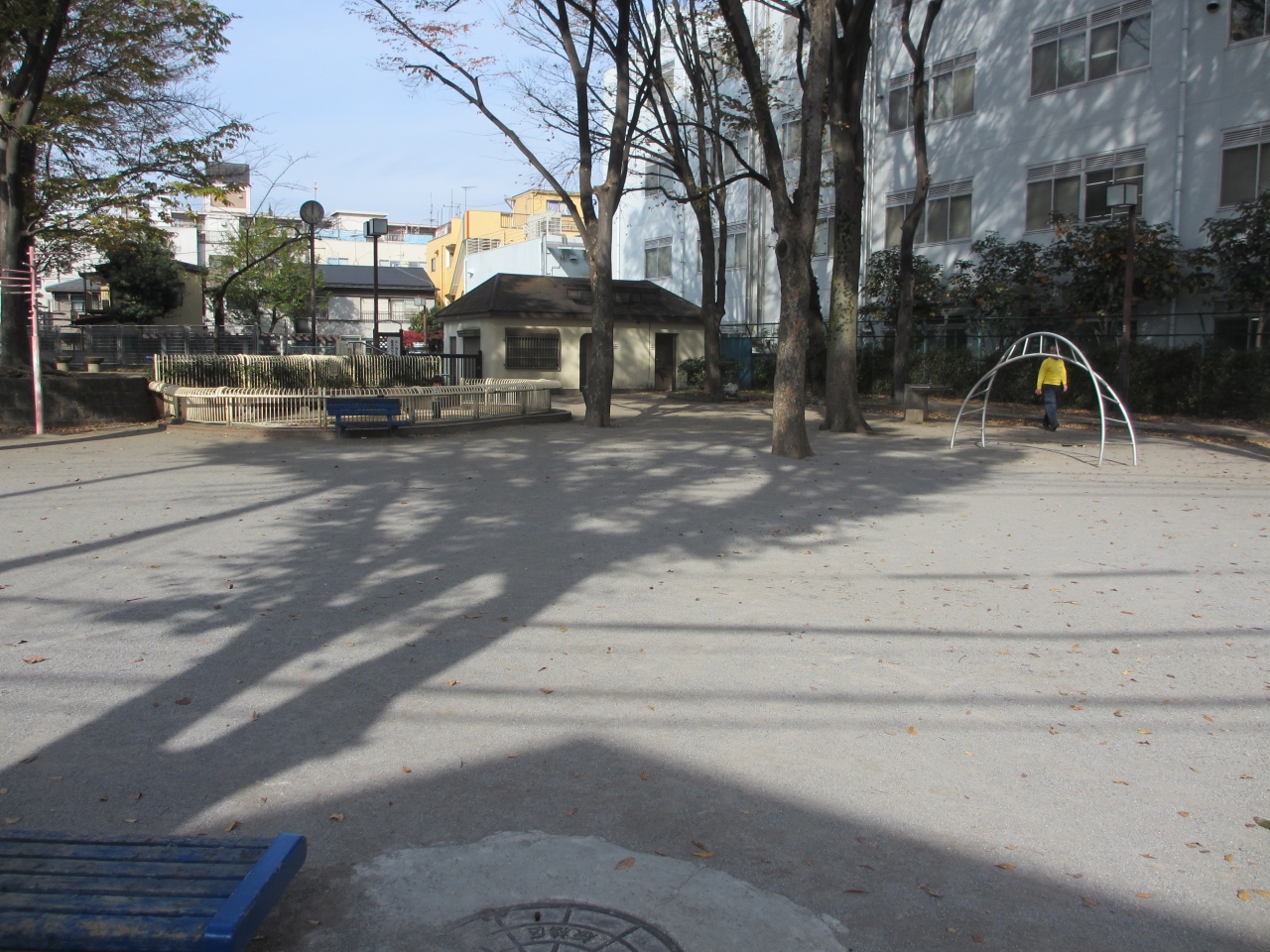 大和町交差点から10分ほどのところにある児童公園です。一方通行の狭い道路を挟んで2つに分かれています。公園内には夏に使用される幼児用プールの他、砂場、シーソー、迷路、ブランコ、すべり台などの遊戯施設や、お年寄り用健康器具なども備わっています。住宅街にあり、大きな木々も植えられ、地元の人たちによく活用されている公園です。