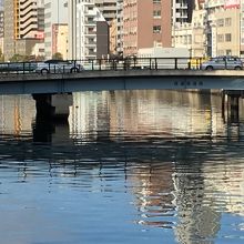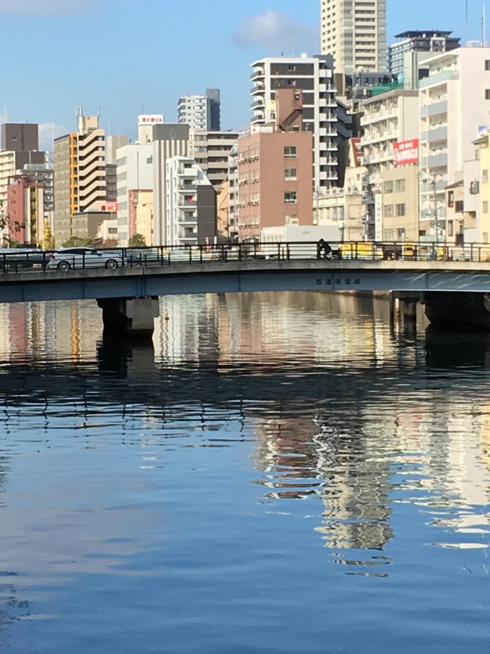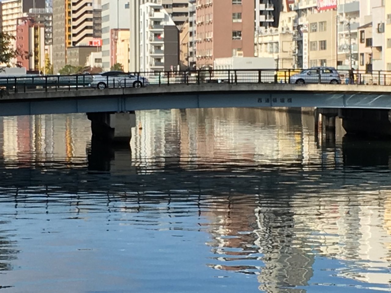 道頓堀というと難波近辺を想像しますが、この橋はなにわ筋と道頓堀川のクロスした場所に架かる橋です。道頓堀や湊町リバープレイスの整備の時にこの橋も変わるかと思いきやそのままで、ある意味道頓堀では貴重な、大阪市電を走らせるために整備された時代の無表情な橋が今もそのままというかんじです。