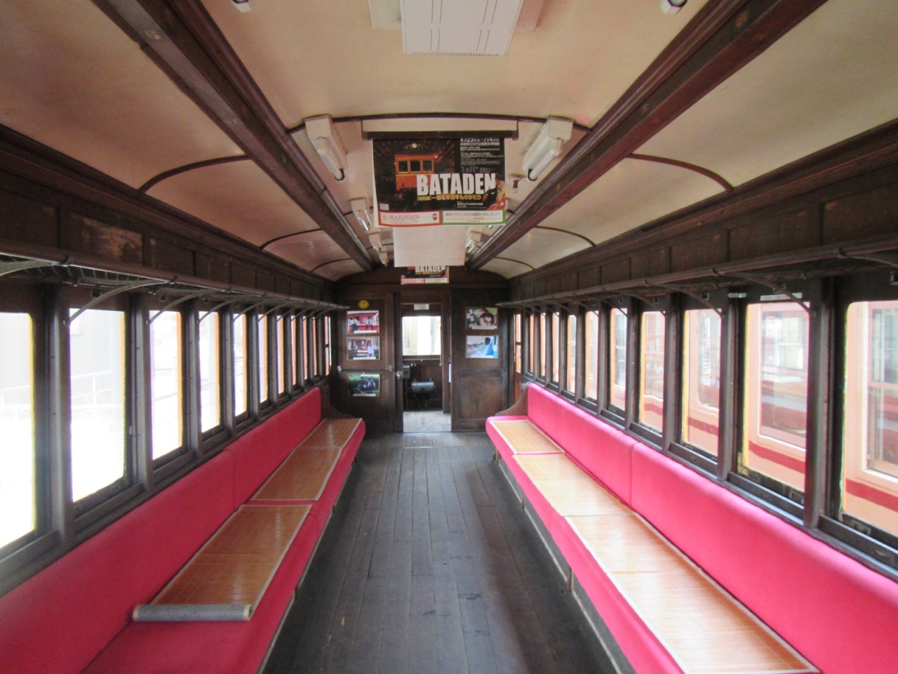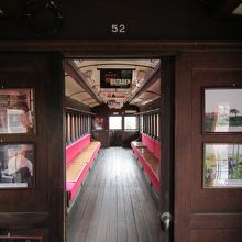 1928-29年に製造されたというレトロな車両で、内部を見学できます。