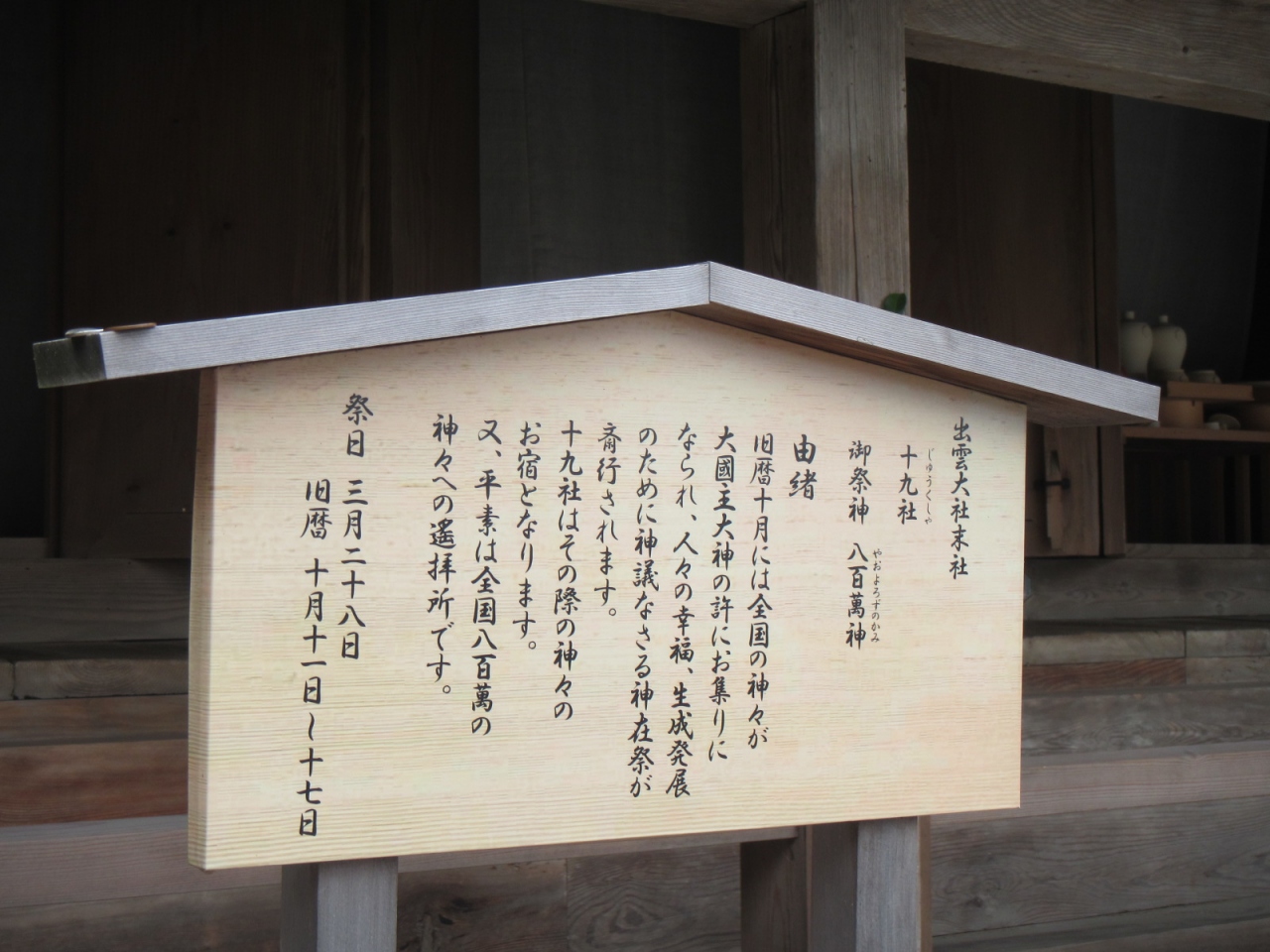神在月の期間、午前10時頃から、御本殿の祭事の後で十九社でも祭事が行われるとのことです。