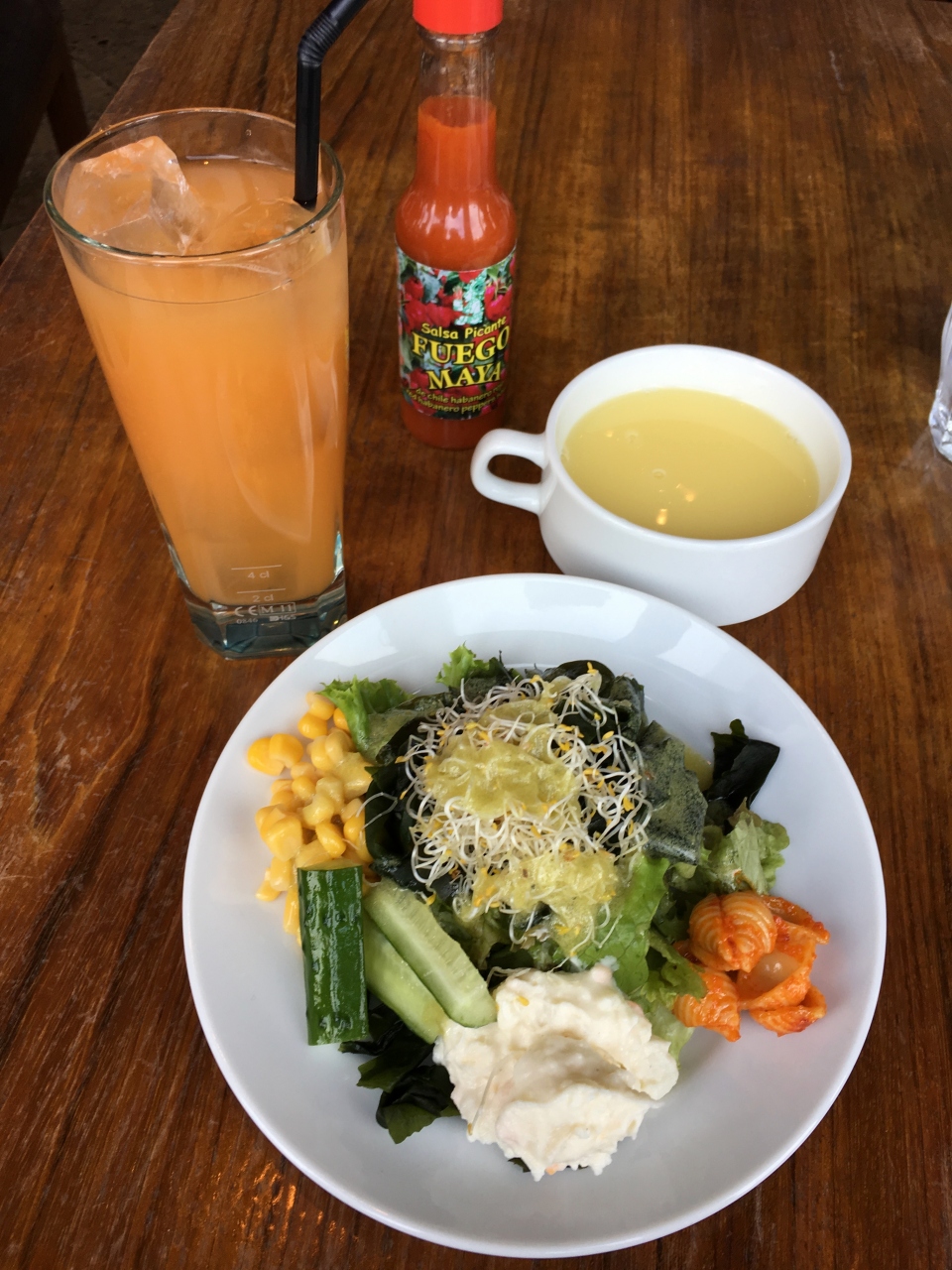 今回、チキンのブリトーをオーダー。ランチ時にはサラダのビュッフェと飲み物、プチデザートが付きます。