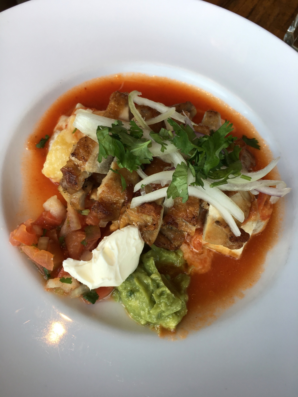 サルサソースが敷かれたお皿にブリトー、その上にソテーされたチキン、パクチーがまぶされていまして、お味は普通に美味しかったです。