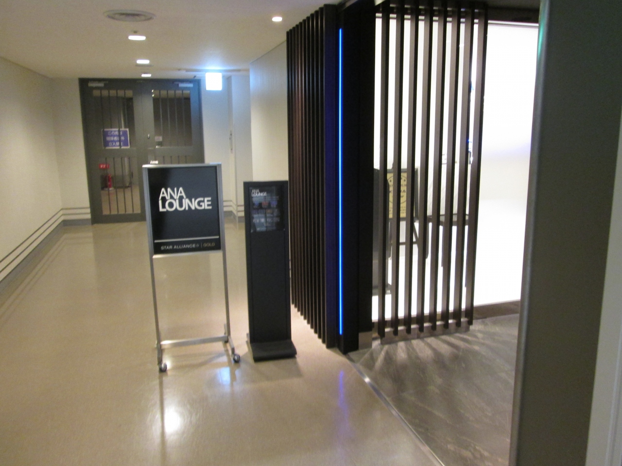 関西空港国内線ターミナルの制限区域内にあります。セキュリティーチェックを出て、すぐ右のところにありました。この空港には上級ステータス、ファーストクラス搭乗者用のスイートラウンジはなく、こちらはスターアライアンス以上のステータス保持者のラウンジでした。