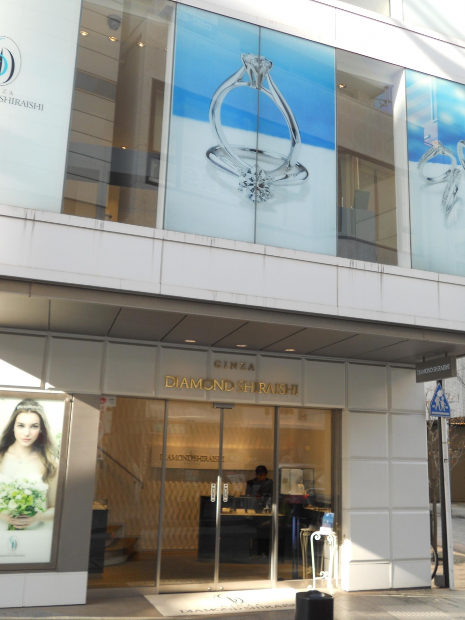 「銀座ダイヤモンドシライシ」は、銀座に本店があるジュエリーショップで、石川町駅寄りにあります。