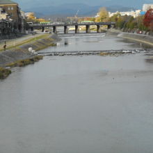 四条通り、河原町から八坂神社方面へ行くのに通る鴨川を渡る橋で、交通量が多いですが、鴨川を見るのに歩きます。この橋を渡ると真正面に八坂神社が右手に南座、祇園に入れますので、いつも、大勢の観光客が歩いています。
