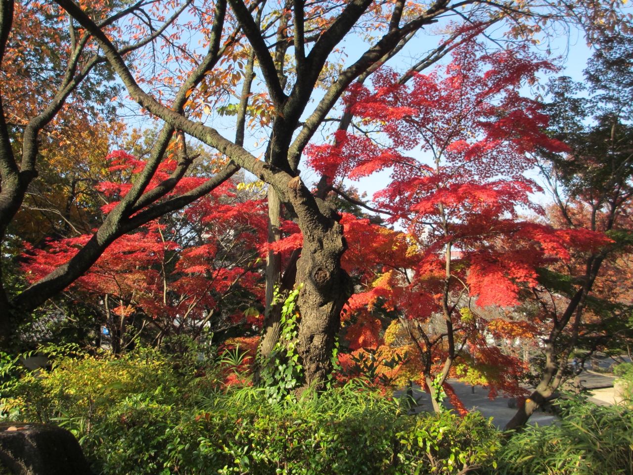 公園を通り王子駅に向かう途中で、きれいに色づいたもみじに出会いました。桜はすでに葉が落ちていましたが、もみじは紅葉の真っ盛りでした。近隣に住んでいながら新しい発見ができ、何か嬉しい気分になりました。春の桜、ツツジ、アジサイそして秋のもみじと四季の変化を感じられる公園であると再確認しました。近くには旧古河庭園もあり併せて訪れると良いかと思います。
