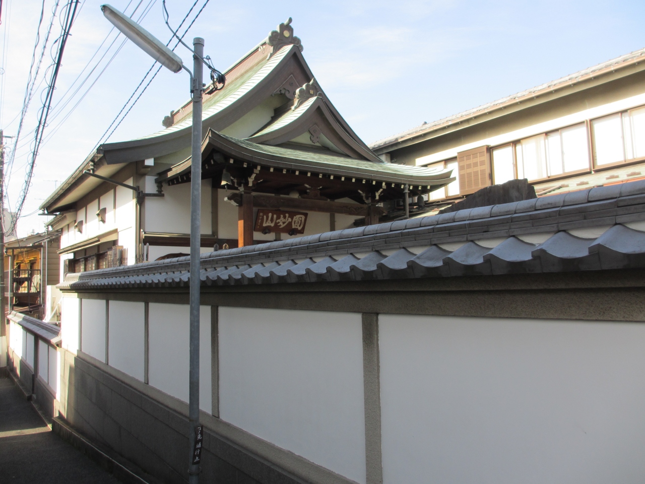 谷中銀座のそば七面坂の下にある顕本法華宗寺院です。かき氷のひみつ堂へ行く時、前を通っていたのですが気が付きませんでした。今回谷中の寺巡りをしていて改めて本授寺を知りました。小さな寺で墓地と呼べるようなある程度の広い場所はなく、山門から本堂までと本堂の裏に墓が並んでいます。特に本堂前の墓は古く歴史ある寺院だとわかります。今回訪れた他の寺には見られない造りの屋根が特徴です。狭い敷地内の本堂だからでしょうか。賑やかな商店街のすぐ裏にある本堂を見るのも面白いと思います。